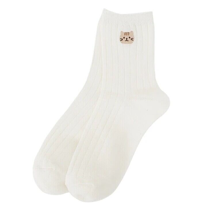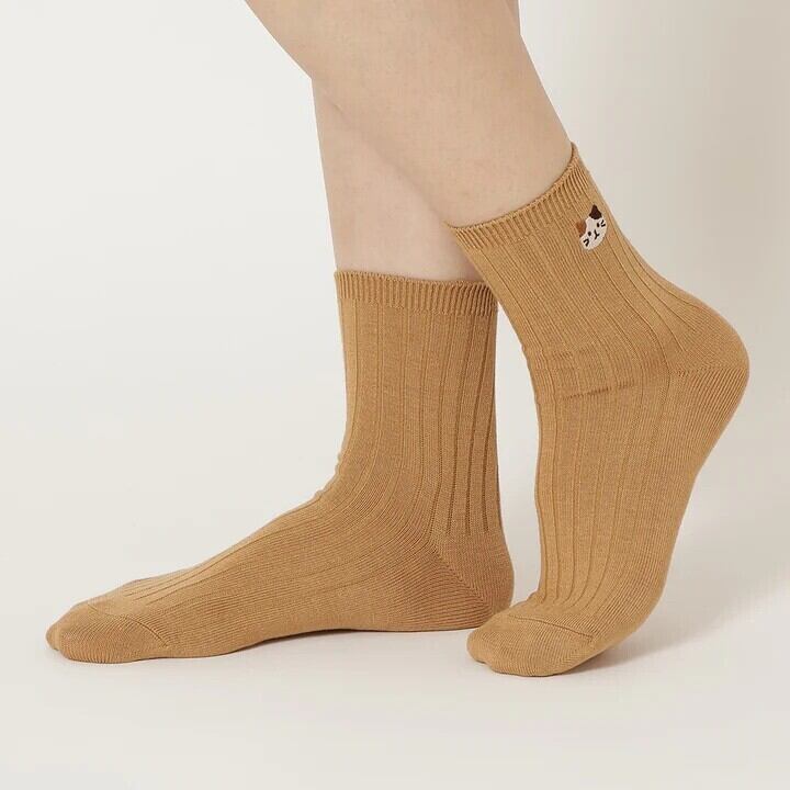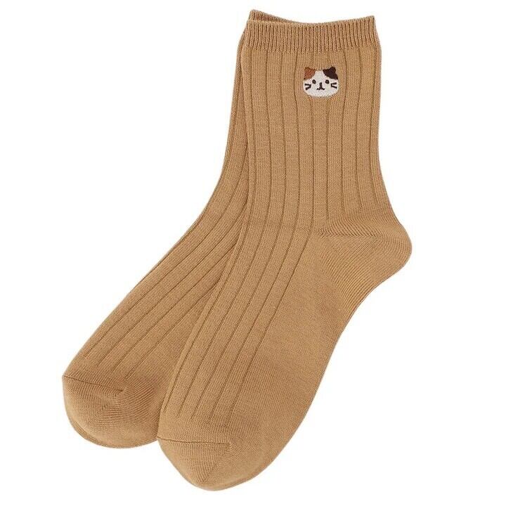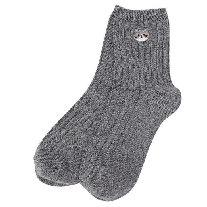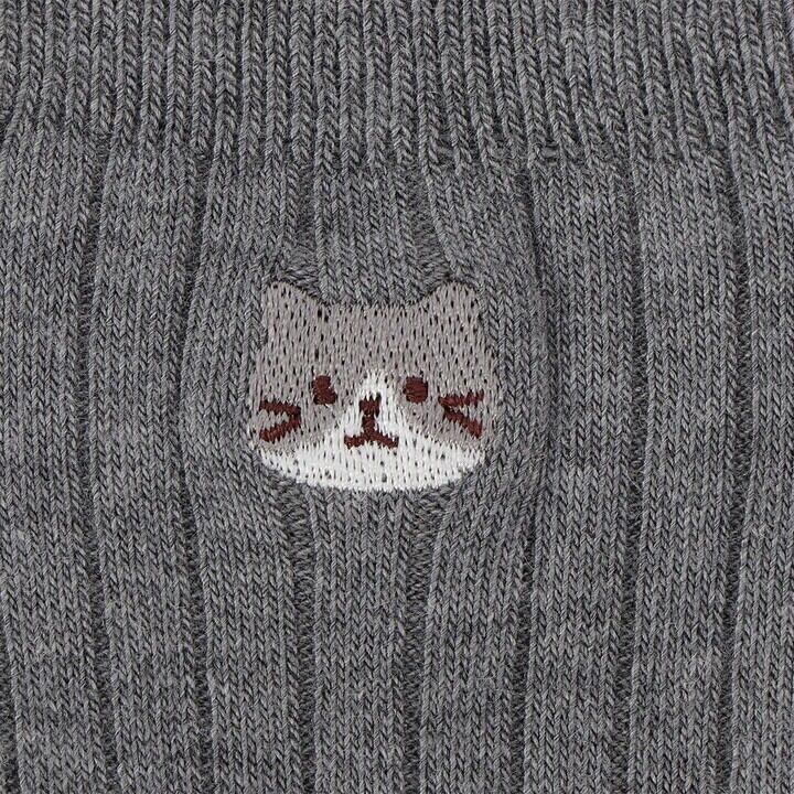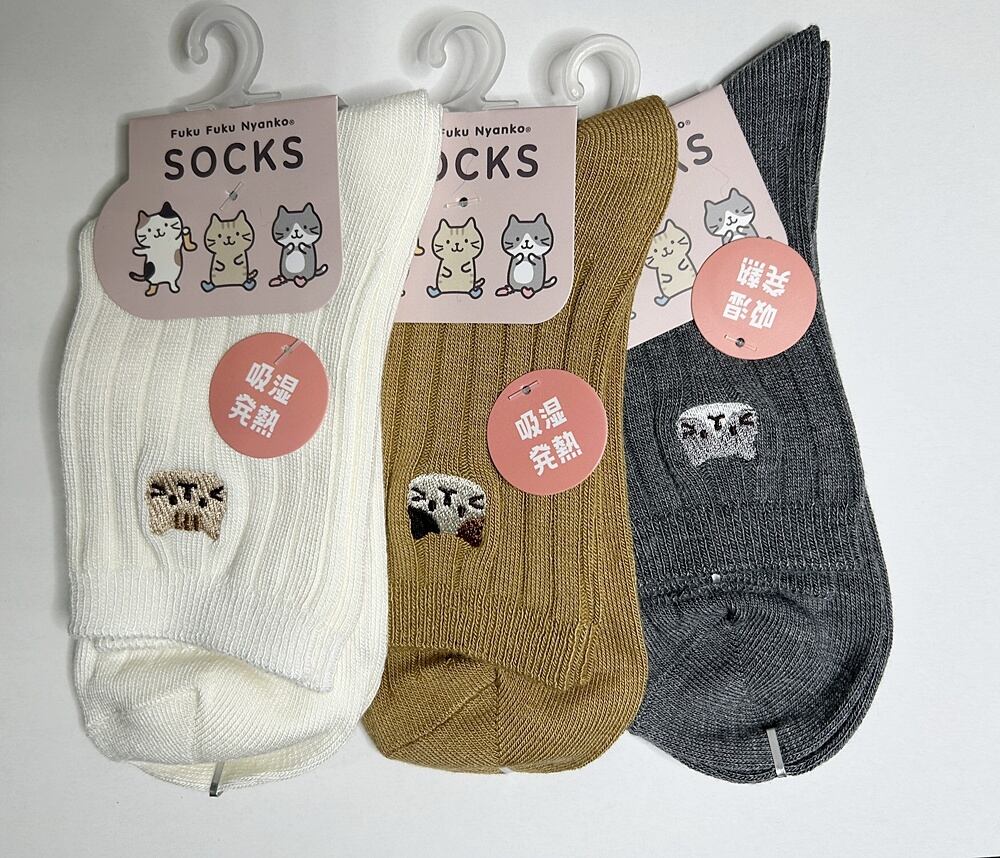 ふくふくにゃんこ 吸湿発熱素材 ワンポイント刺繍くつした